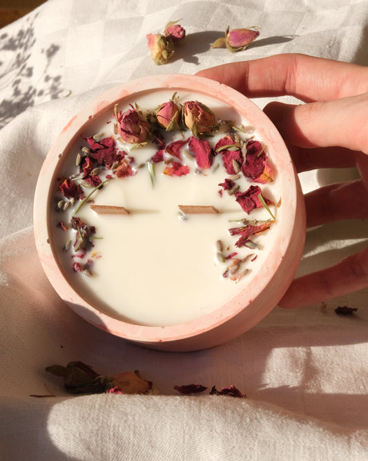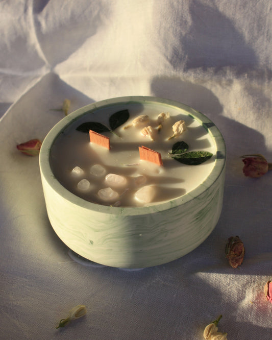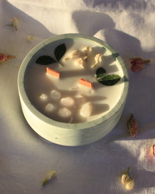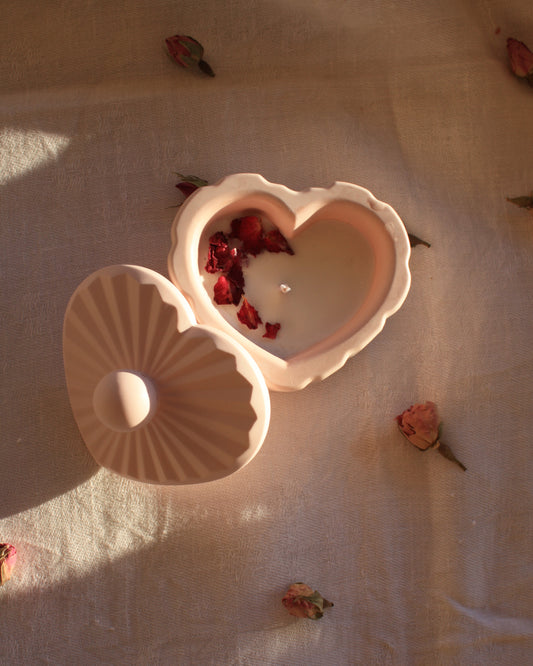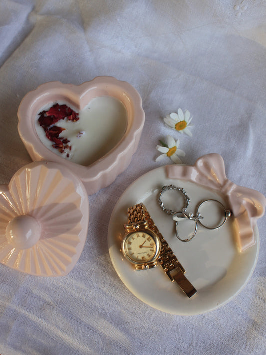 Pack Romántico: vela en tarro de corazón + platito lazo