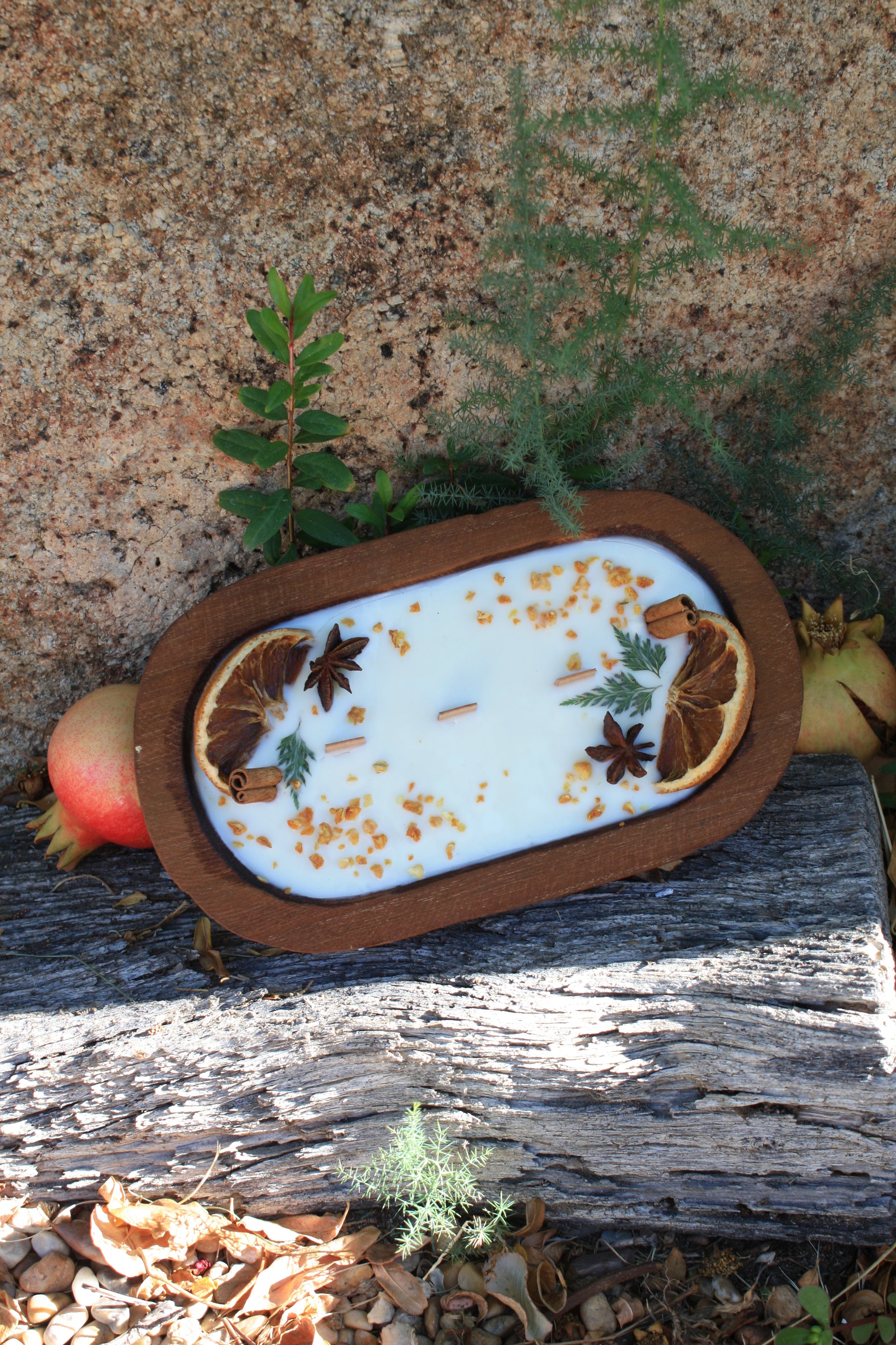 Vela de cera de soja 100% natural en tarro alargado de madera