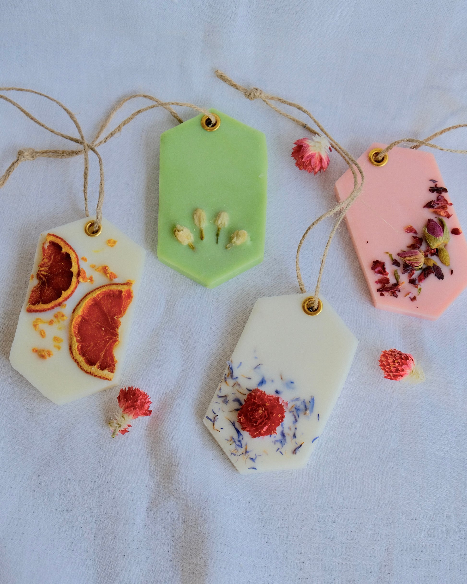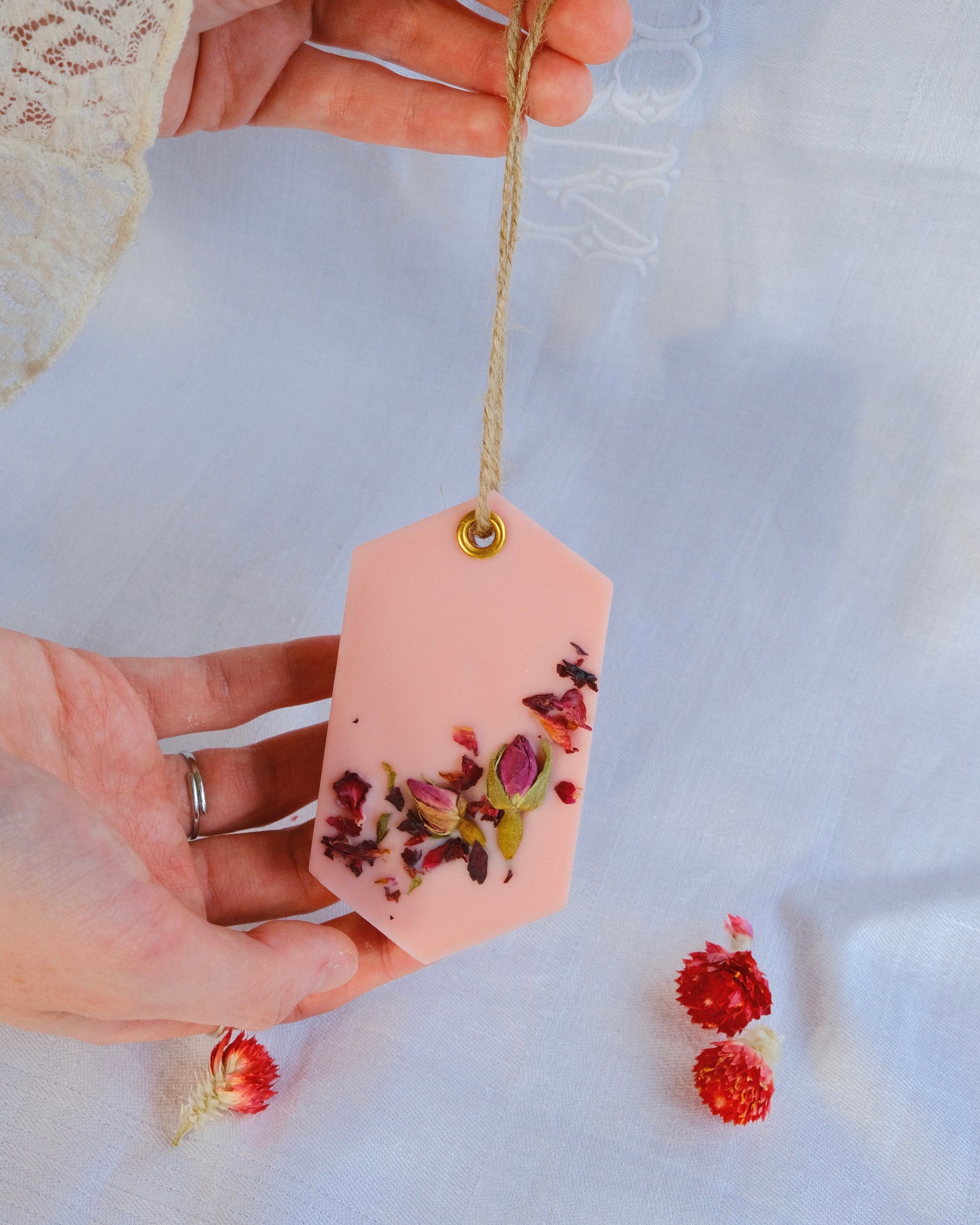 Ambientador sólido hecho con cera de soja 100% natural, ideal para perfumar armarios, cajones o cualquier rincón pequeño del hogar.